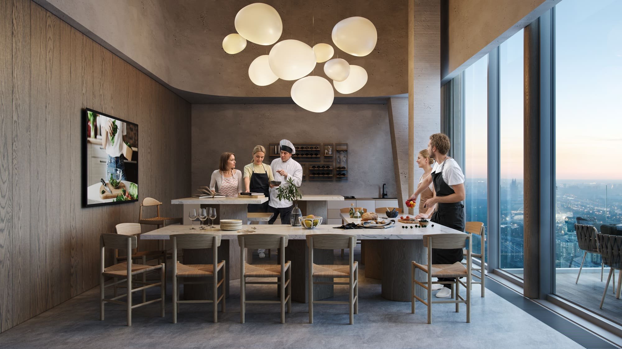 Общественное пространство SocialHUB — место, где время становится ценностью, окружение — источником вдохновения, а уединение или общение — осознанным выбором. Резиденты могут не только пользоваться готовыми сценариями, но и формировать свои: от утренней йоги до деловых встреч, от семейных ужинов до творческих проектов.