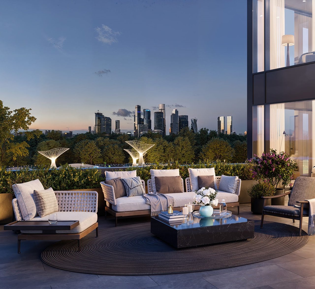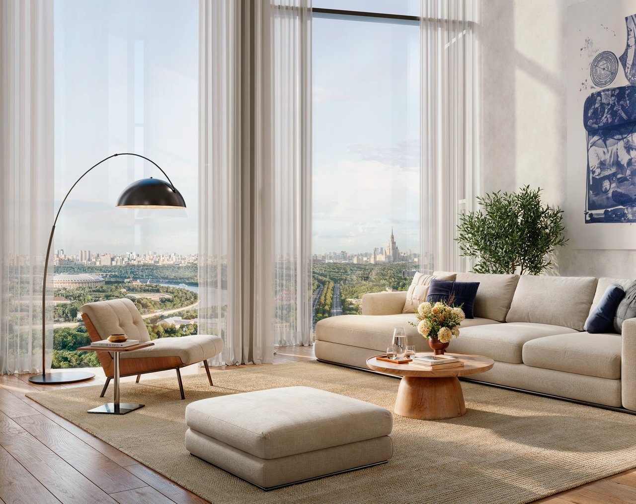 Здесь Москва раскрывается иначе — масштабно, красиво и по-настоящему вдохновляюще. Из панорамных окон открываются виды, которые становятся частью вашей повседневности: изгибы Москвы-реки, динамика Лужников, величие МГУ им. Ломоносова, природная глубина Воробьёвых гор, торжественность Парка Победы и сияющий силуэт Москва-Сити.