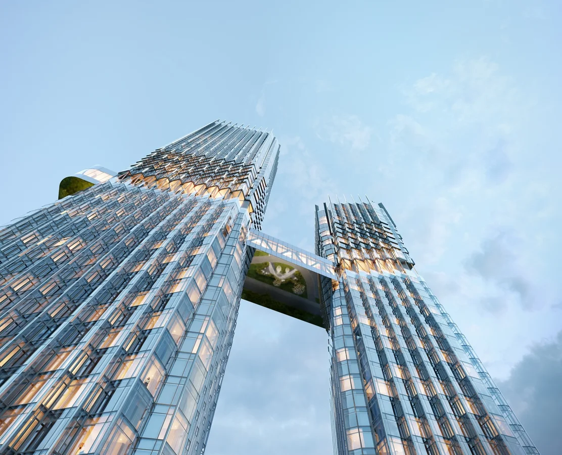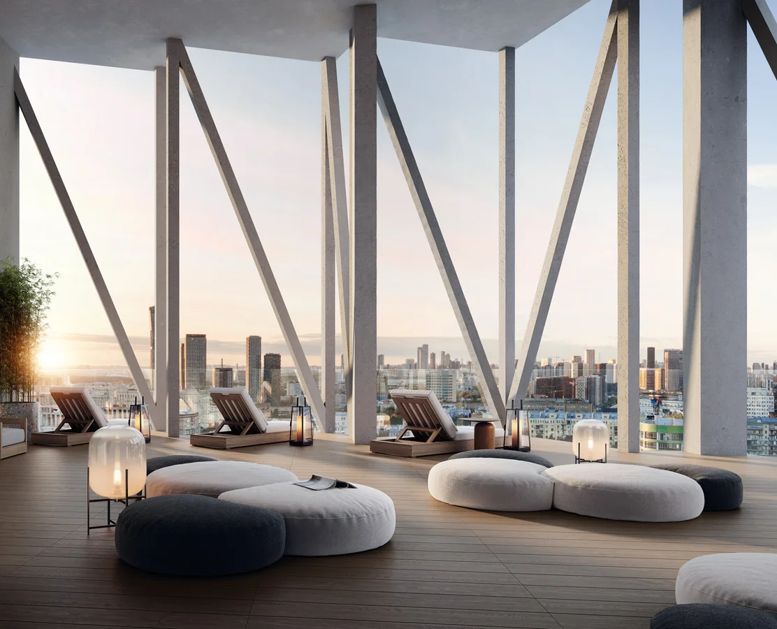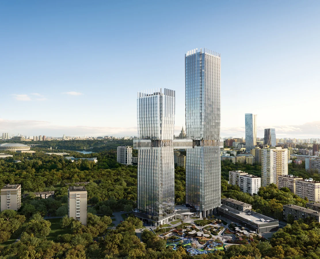hideOUT — премиальный жилой комплекс из двух башен, соединённых мостом на высоте 80 метров. Уникальная архитектура, приватный SocialHUB и панорамы на Москву-сити, Лужники и МГУ создают новый стандарт городской жизни. Проект признан лучшим небоскрёбом Москвы и самым инвестиционно-привлекательным объектом столицы по версии премии Urban 2025.