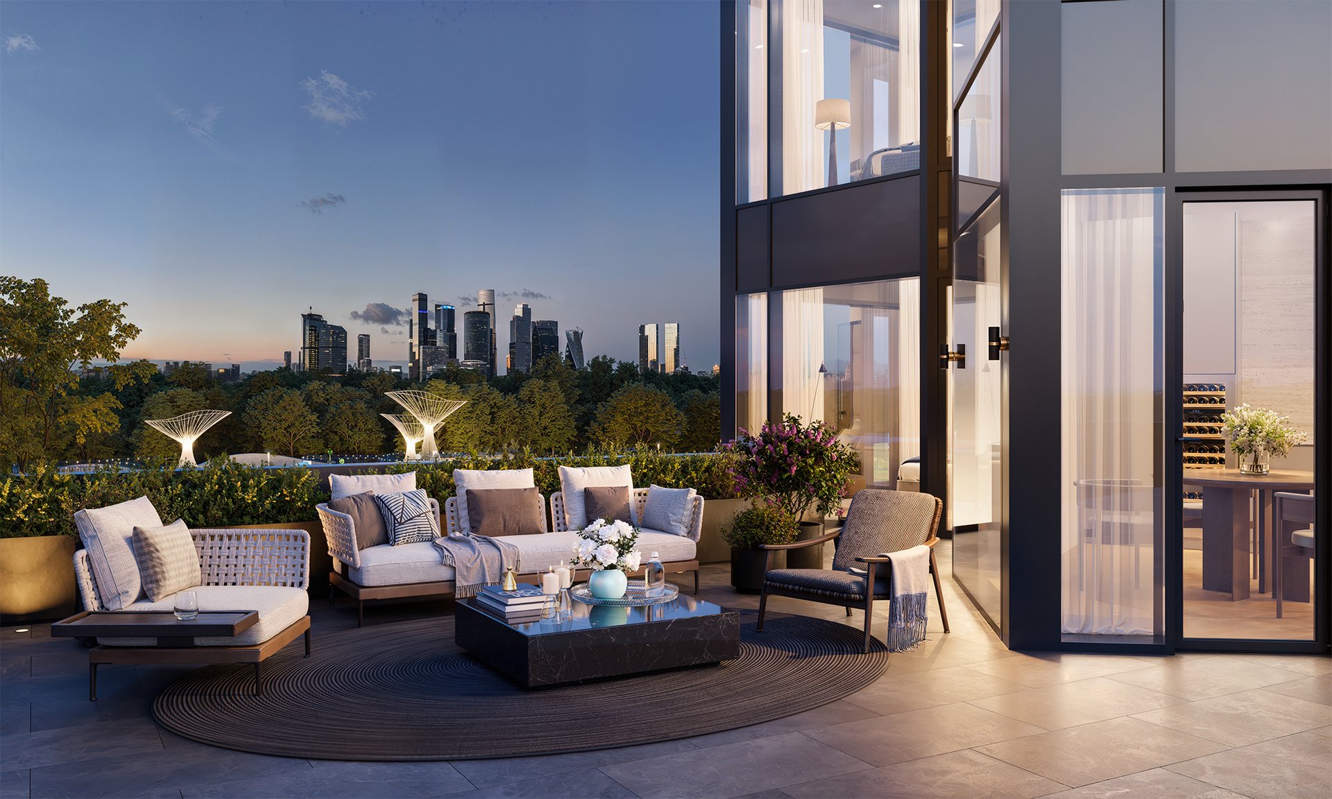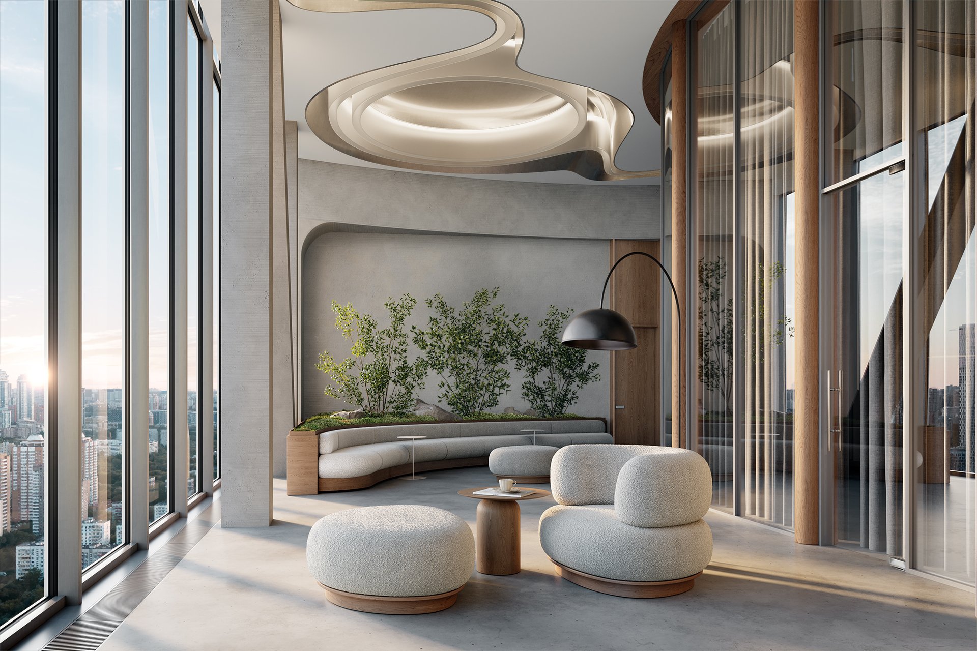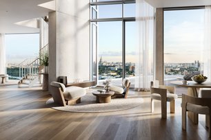 Две башни: 34 и 49 этажей - открывают захватывающие виды на Москву из каждой квартиры. Архитектурной доминантой.
