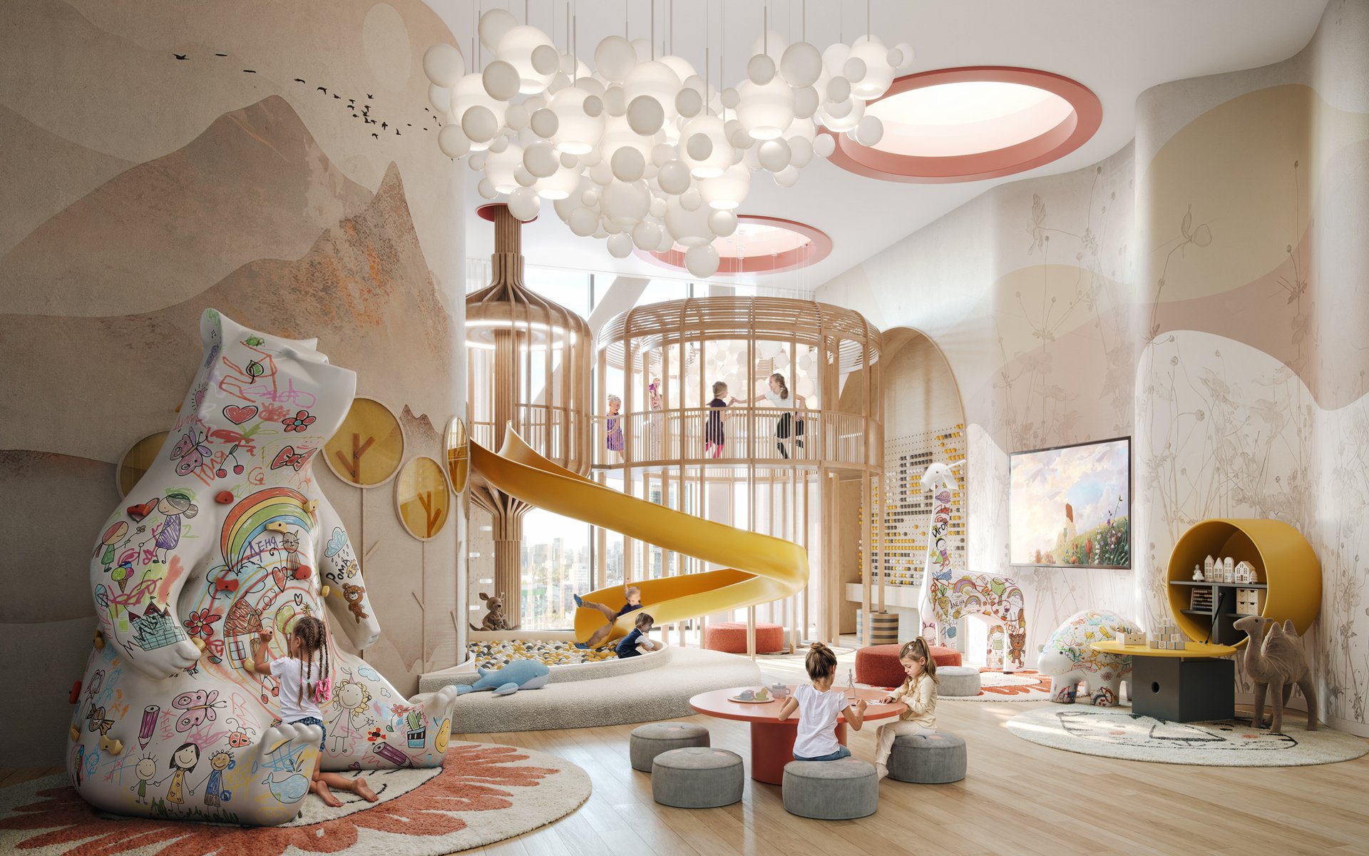 на внутренней закрытой территории предусмотрены 15 зон для отдыха, работы, спорта и детского досуга.